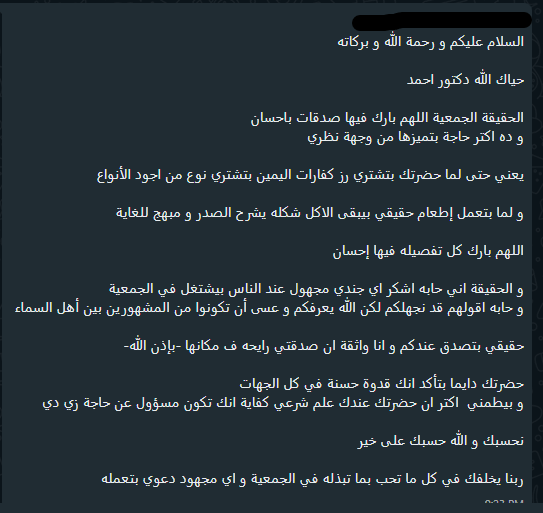 لاحظت ان واحدة كبيرة في السن دخلت وهي تدعو للجمعية دعاء كثيرا.. كانت تشعر بامتنان شديد وصوتها لا يكاد يظهر.....